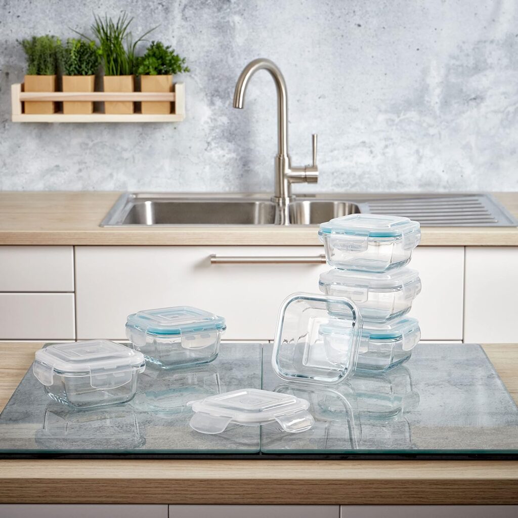 6er Set Mini Glas Frischhaltedosen quadratisch
