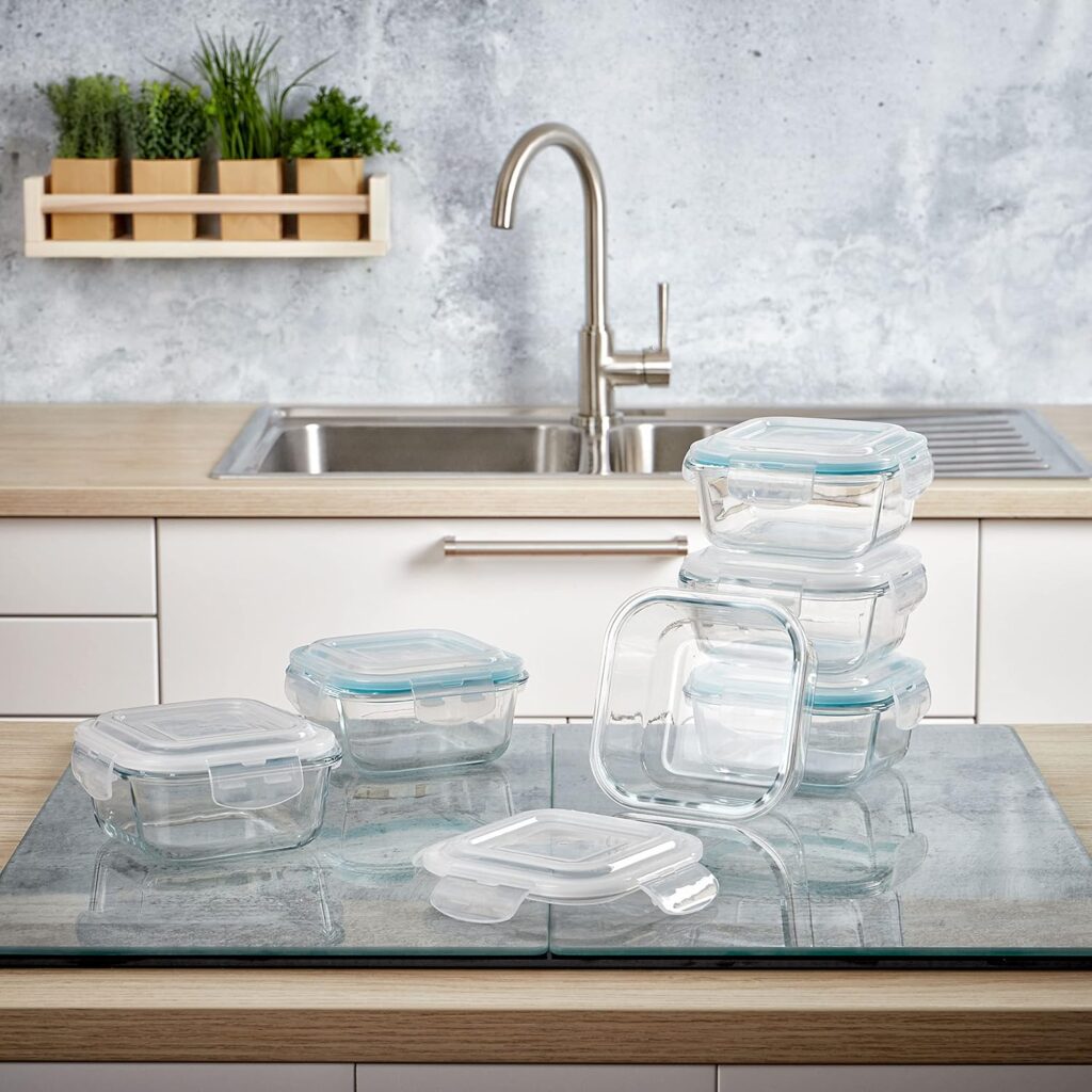 6er Set Glas Frischhaltedosen quadratisch